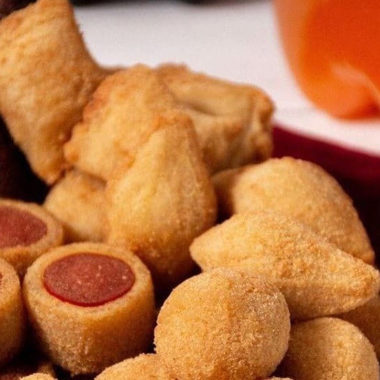 Deliciosos 50 salgadinhos fritos na hora dos seus sabores favoritos, a opção perfeita para seu lanche! *18g cada unidade
