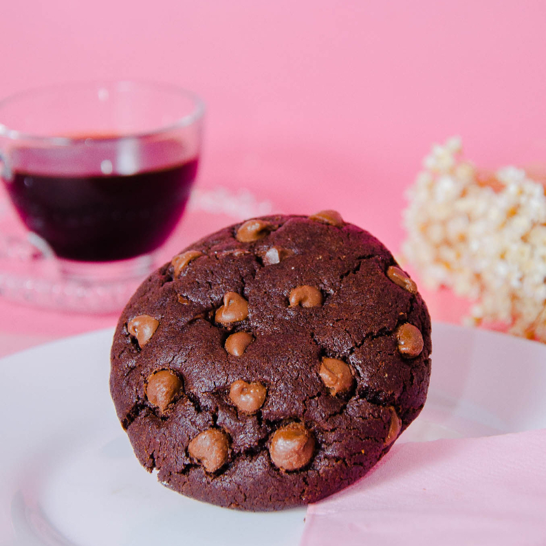 Cookie tradicional feito com massa deliciosa de chocolate, pedaços de chocolate meio amargo e gotas de chocolate para finalizar. Opção incrível para acompanhar aquele cafézinho (: