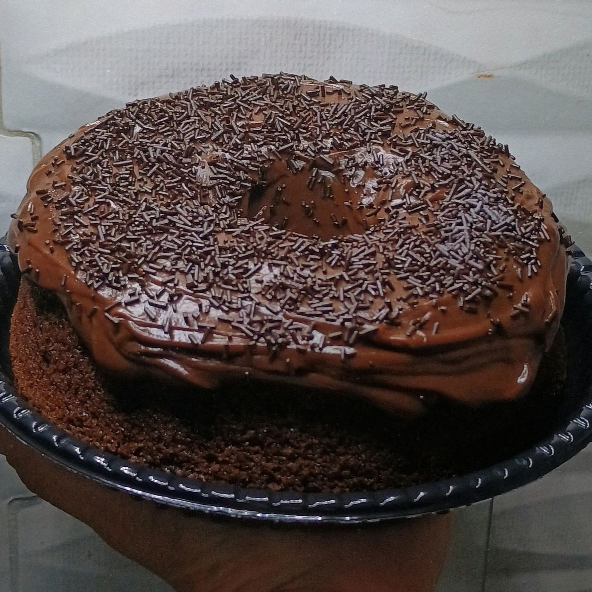 Massa chocolate fofinha, cobertura de chocolate, finalizado com brigadeiro. 18cm tamanho