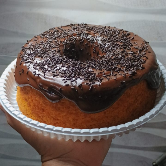 Delicioso caseirinho de cenoura com calda de chocolate, tamanho 18 cm.