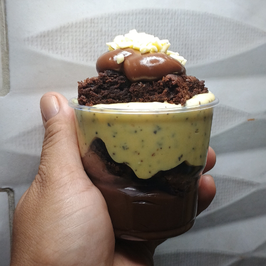 Delicioso copo com creme de chocolate, brownie, creme da fruta de maracujá, é irresistível para os amantes de maracujá. 250 gramas