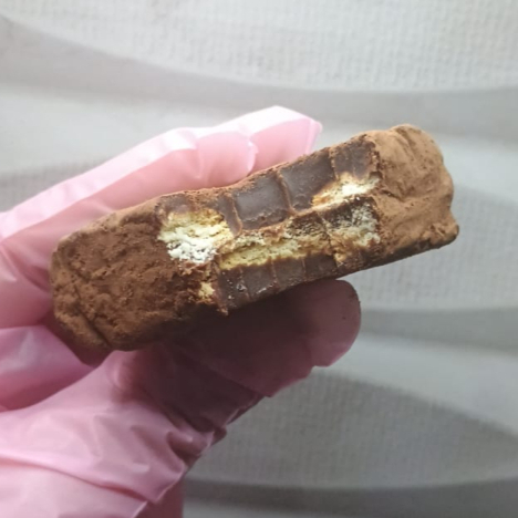delicioso mini caseirinho, coberto de chocolate e finalizado com kit kat