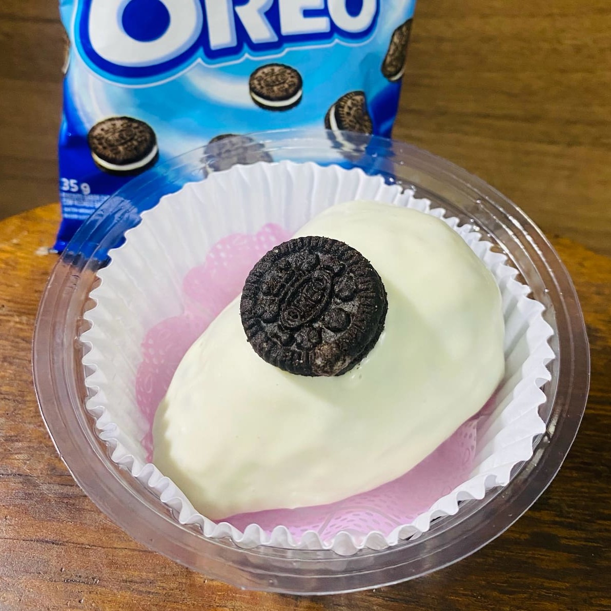 Morango envolvido por um creme de leite Ninho suave, com pedaços de biscoito Óreo triturado. Coberto com uma generosa camada de chocolate branco nobre e finalizado com um biscoitinho crocante para dar o toque final perfeito.