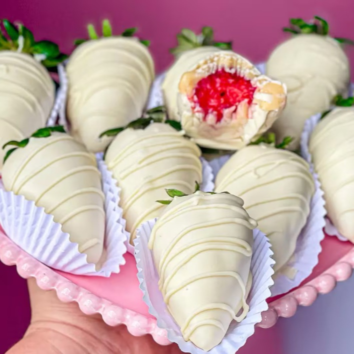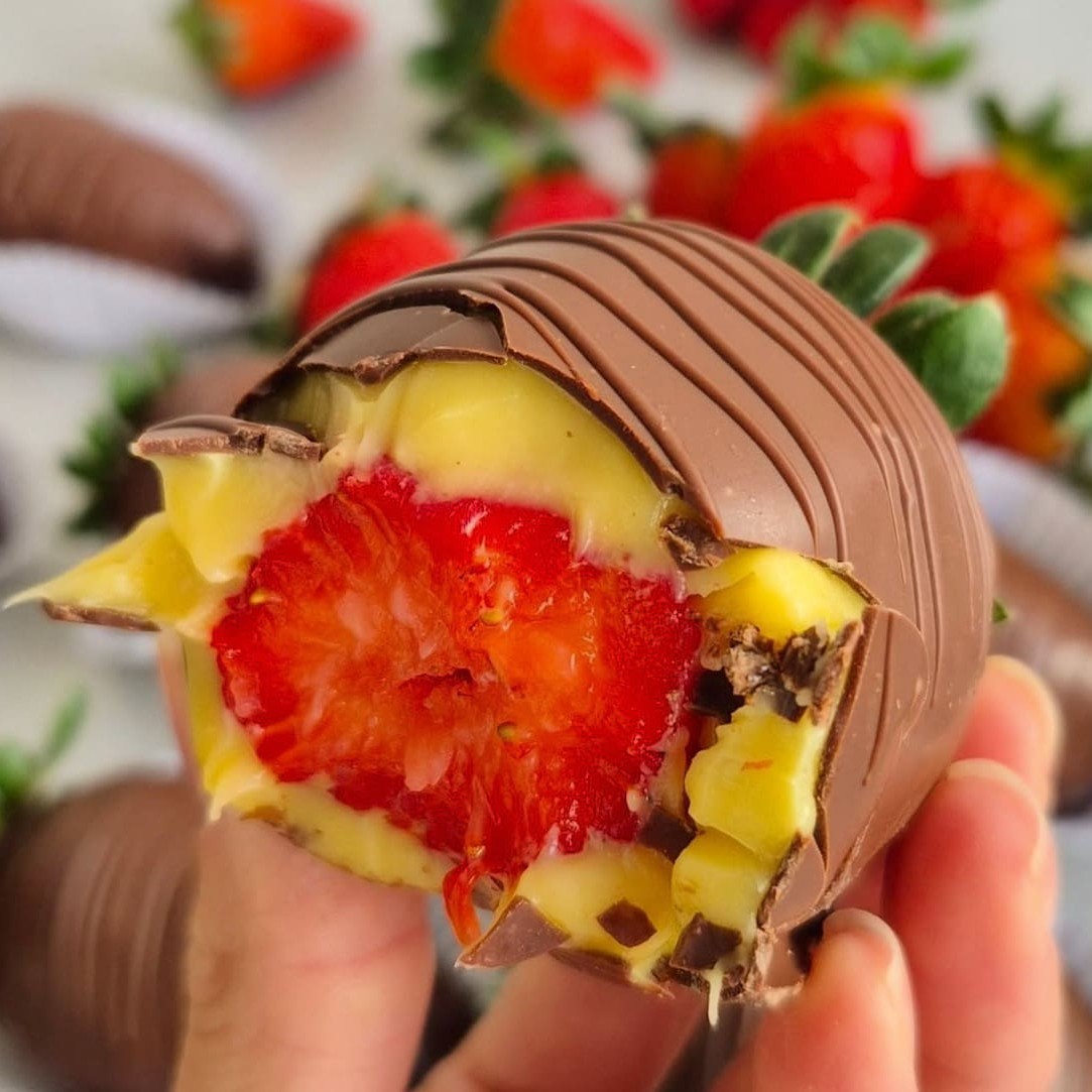 Morango com creme de Ninho e cobertura de chocolate branco premium