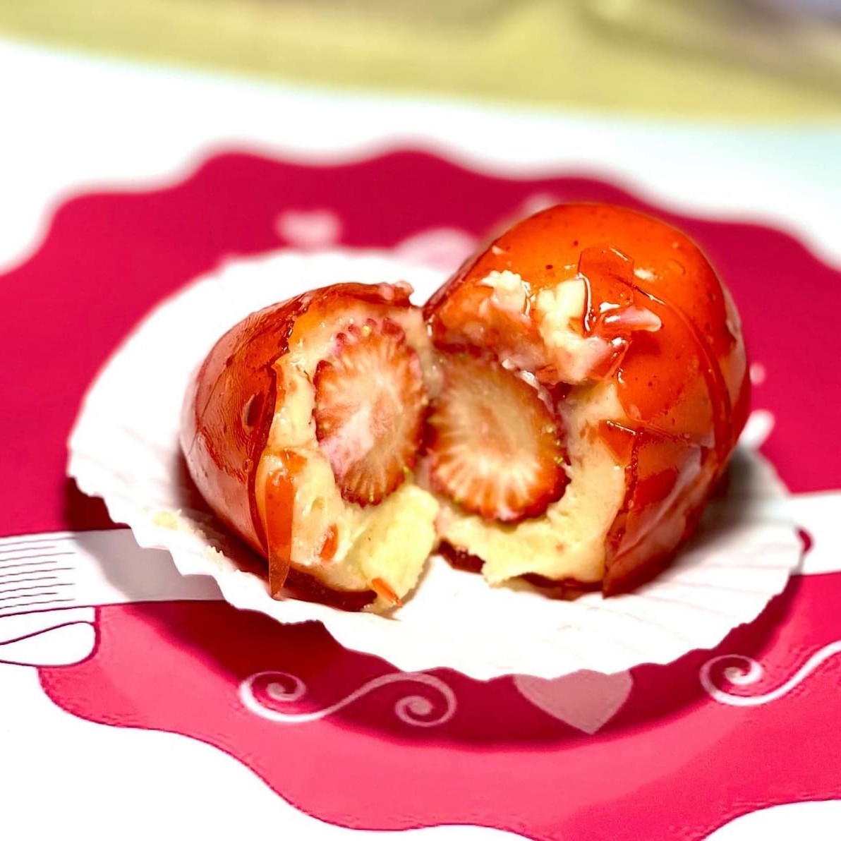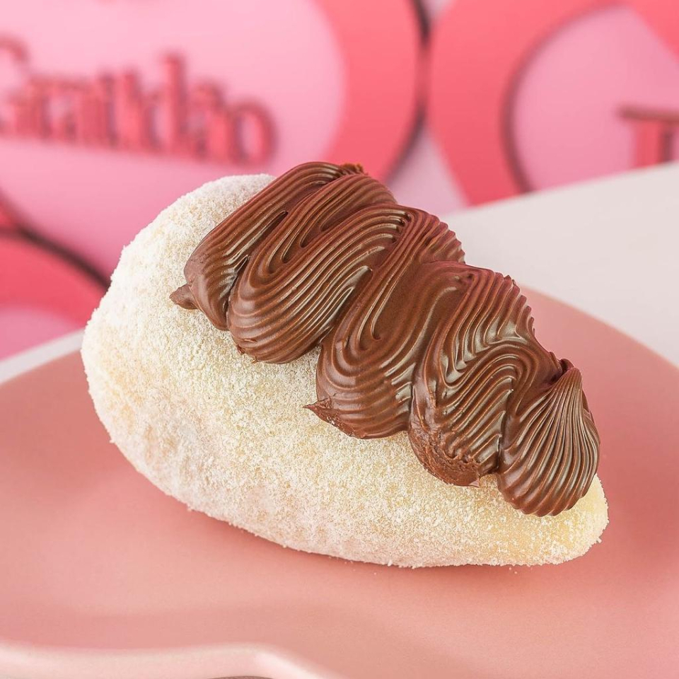 Morango envolvido por um creme de leite Ninho cremoso, moldado no formato de coxinha. Finalizado com uma leve camada de leite em pó e Nutella de verdade para um acabamento delicado e saboroso.