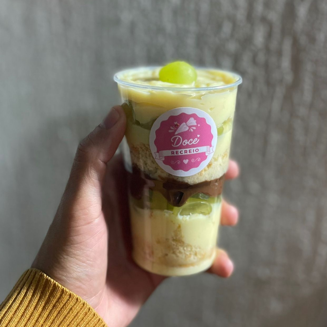 Copo de 300ml com camadas de uva, bolo de baunilha,creme de ninho e nutella