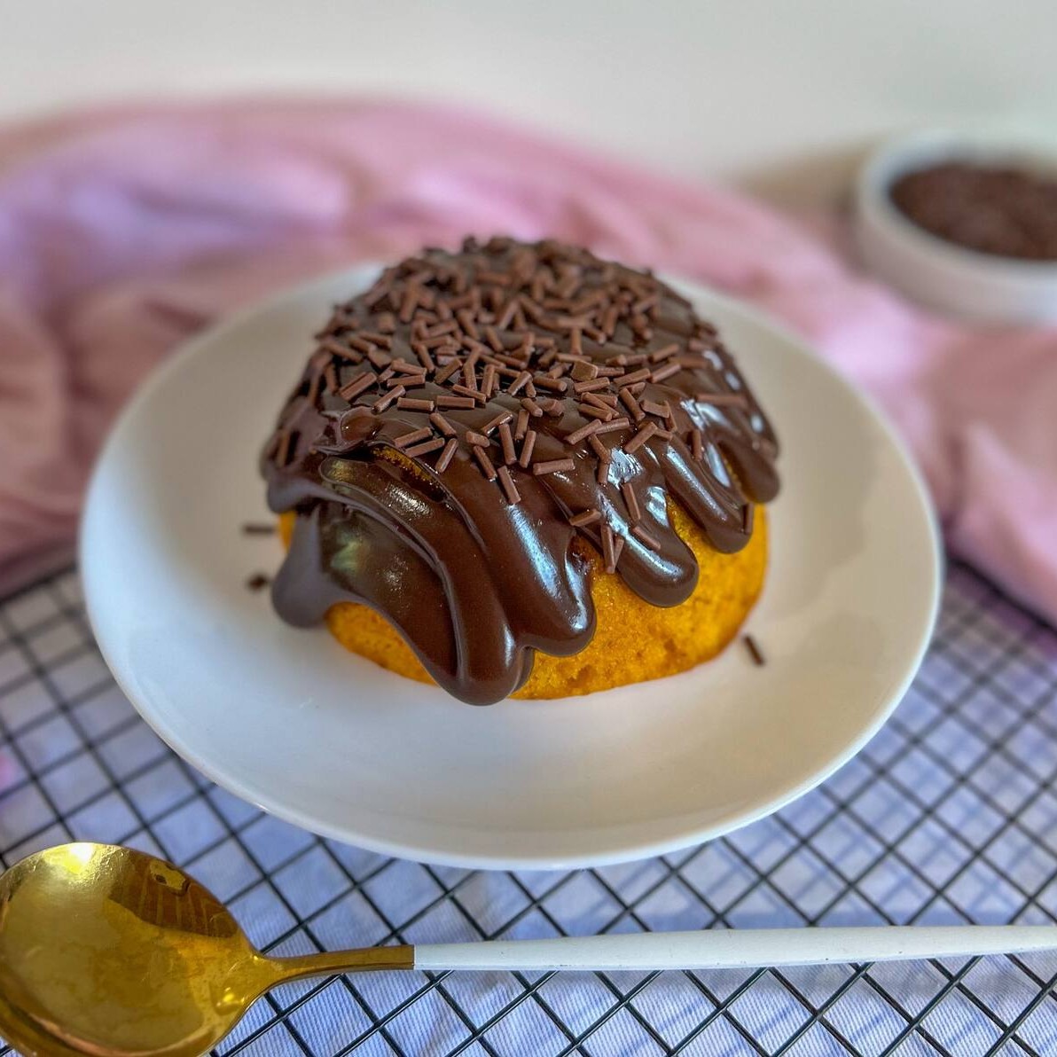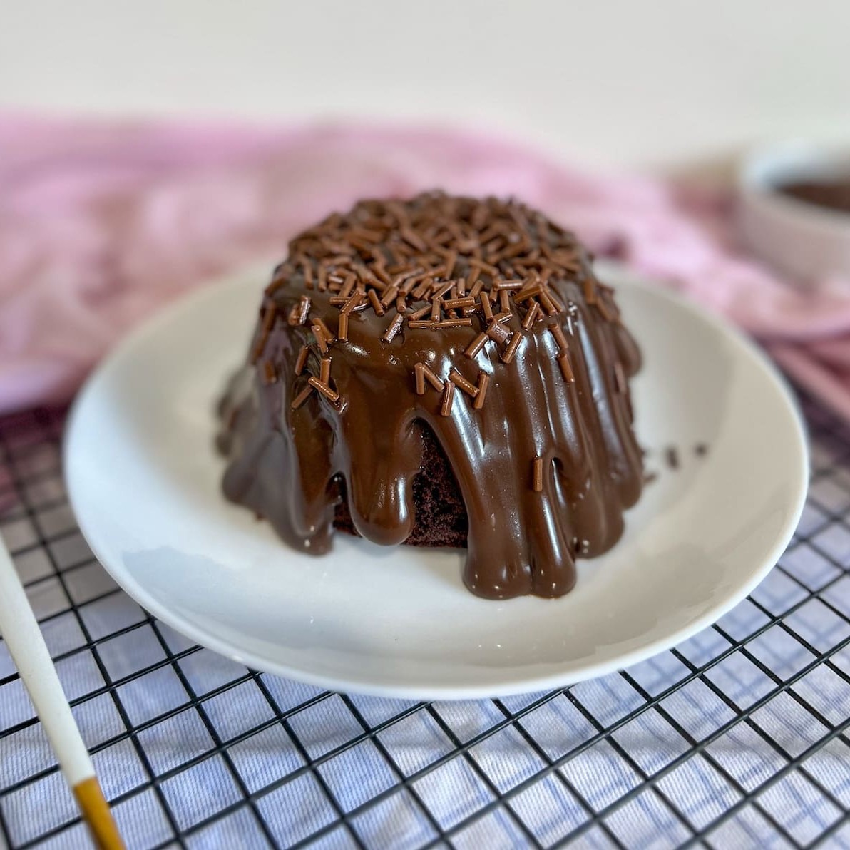 Massa de chocolate fofinha, coberta com brigadeiro de chocolate e granulado de chocolate ao leite.