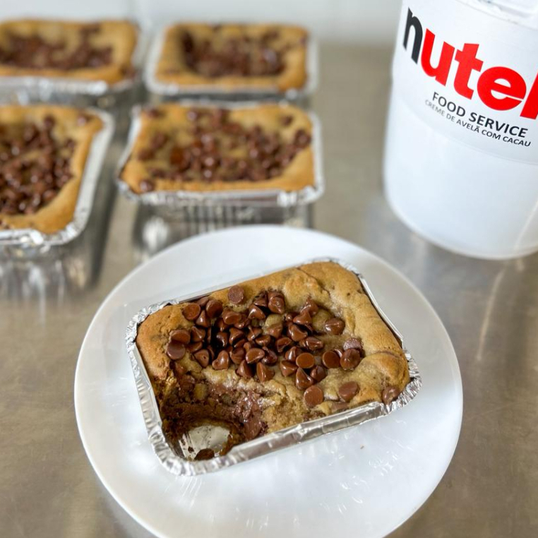 Marmitinha de cookie tradicional, recheada com muita Nutella e gotas de chocolate nobre.