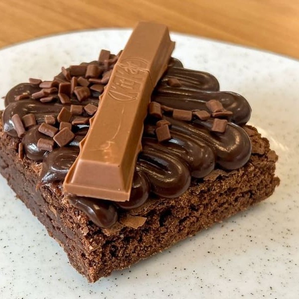 Nosso delicioso Brownie Dociffitas, com nossa fabulosa cobertura de brigadeiro artesanal, finalizado com Kit Kat.