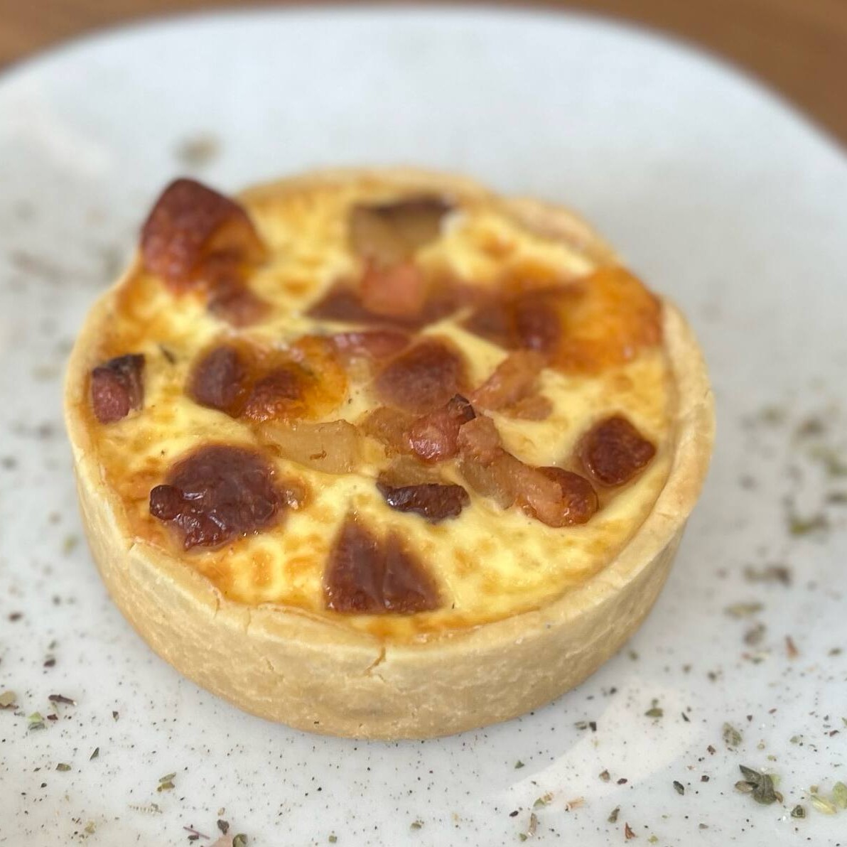 Deliciosa quiche de massa fresquinha com creme a base de creme de leite e ovos e sabor a sua escolha.