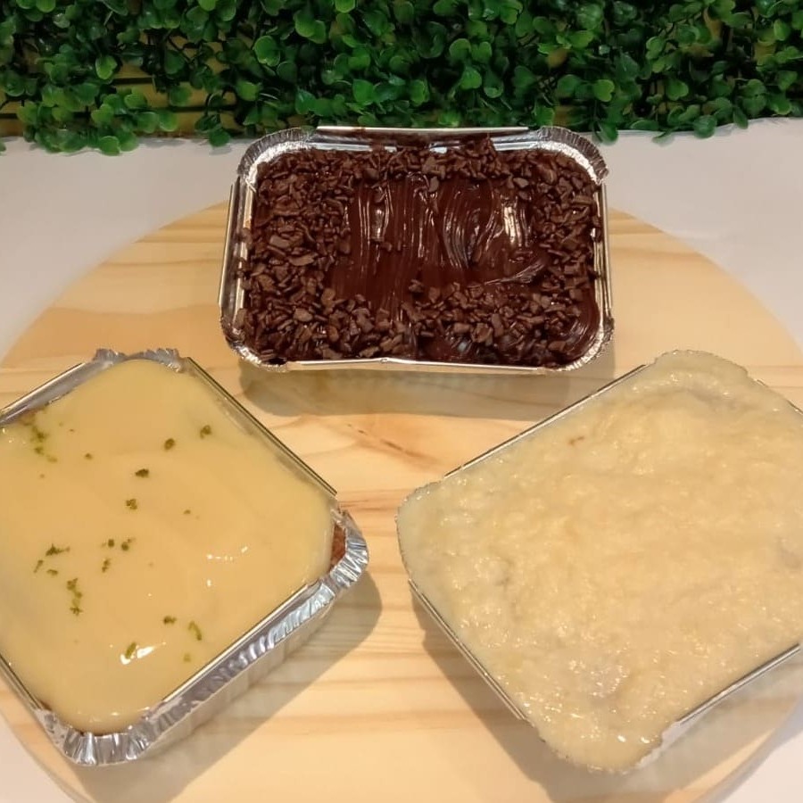 1 Bolo gelado de chocolate, com massa gourmet e deliciosa cobertura de brigadeiro feita com chocolate nobre, 1 de coco massa de coco com cobertura de brigadeiro de coco e 1 limão massa de limão com cobertura de limão