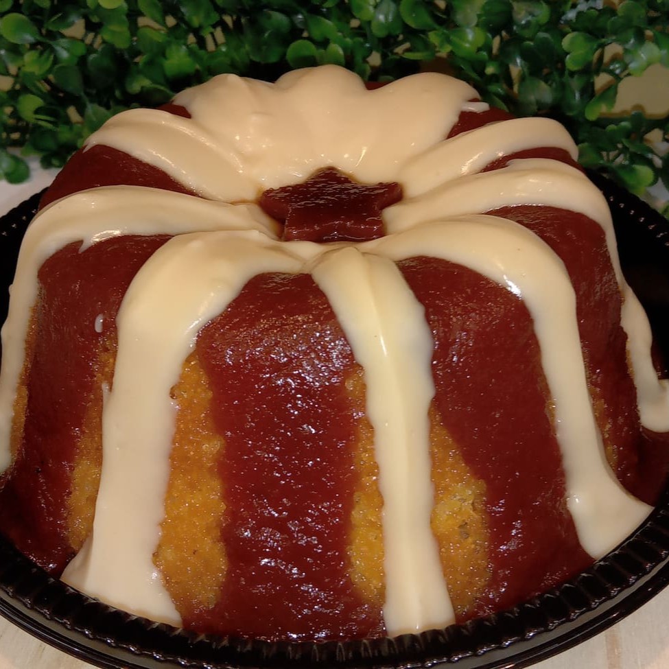 O Bolo de Fubá, é um deleite irresistível que evoca memórias nostálgicas da infância. Preparado cuidadosamente com uma deliciosa massa de fubá, este bolo é enriquecido com a adição de queijo parmesão e coco em flocos, que tornam o bolo perfeito. A cobertura é uma combinação perfeita de goiabada em calda . Finalizado com um toque especial: um delicioso brigadeiro cremoso de cream cheese. Uma obra-prima caseira que certamente irá encantar o seu paladar!