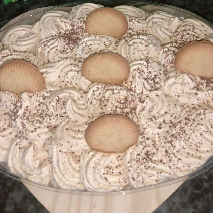 Delicioso creme feito com chocolate laka ,intercalando com biscoitos de maizena, finalizado com guanache de chocolata, perfeito.