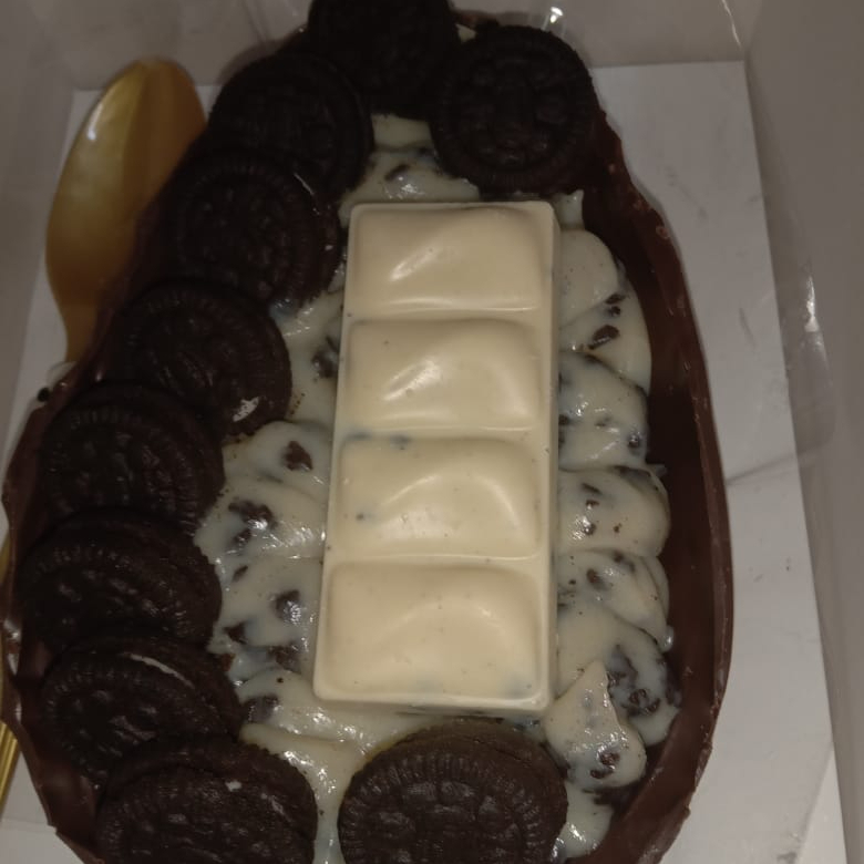Casca de chocolate ao leite recheado com brigadeiro e nosso maravilhoso creme laka oreo. 400grs aproximadamente