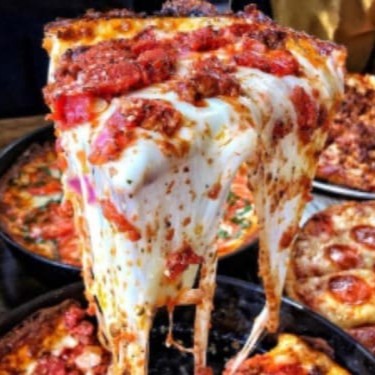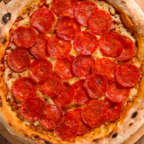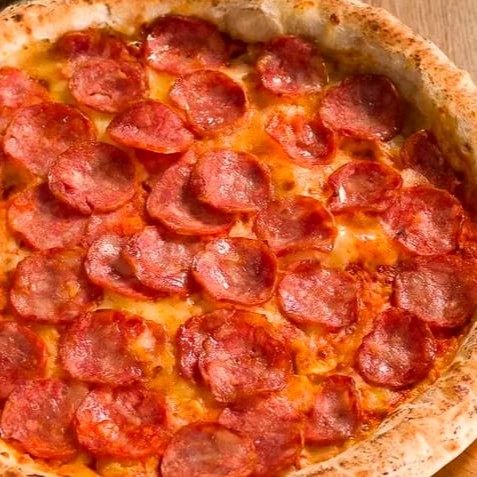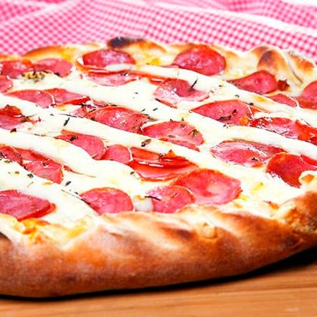 Molho de tomate próprio, mussarela importada, pepperoni em fatias e orégano. A mais famosa da américa!