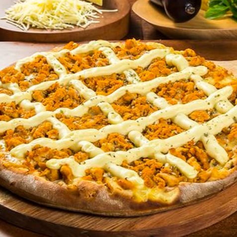 Massa artesanal com molho de tomate especial, frango desfiado suculento, mussarela derretida, bacon crocante, toque de alho frito e cremosidade do cream cheese. Sabor rústico e inesquecível.
