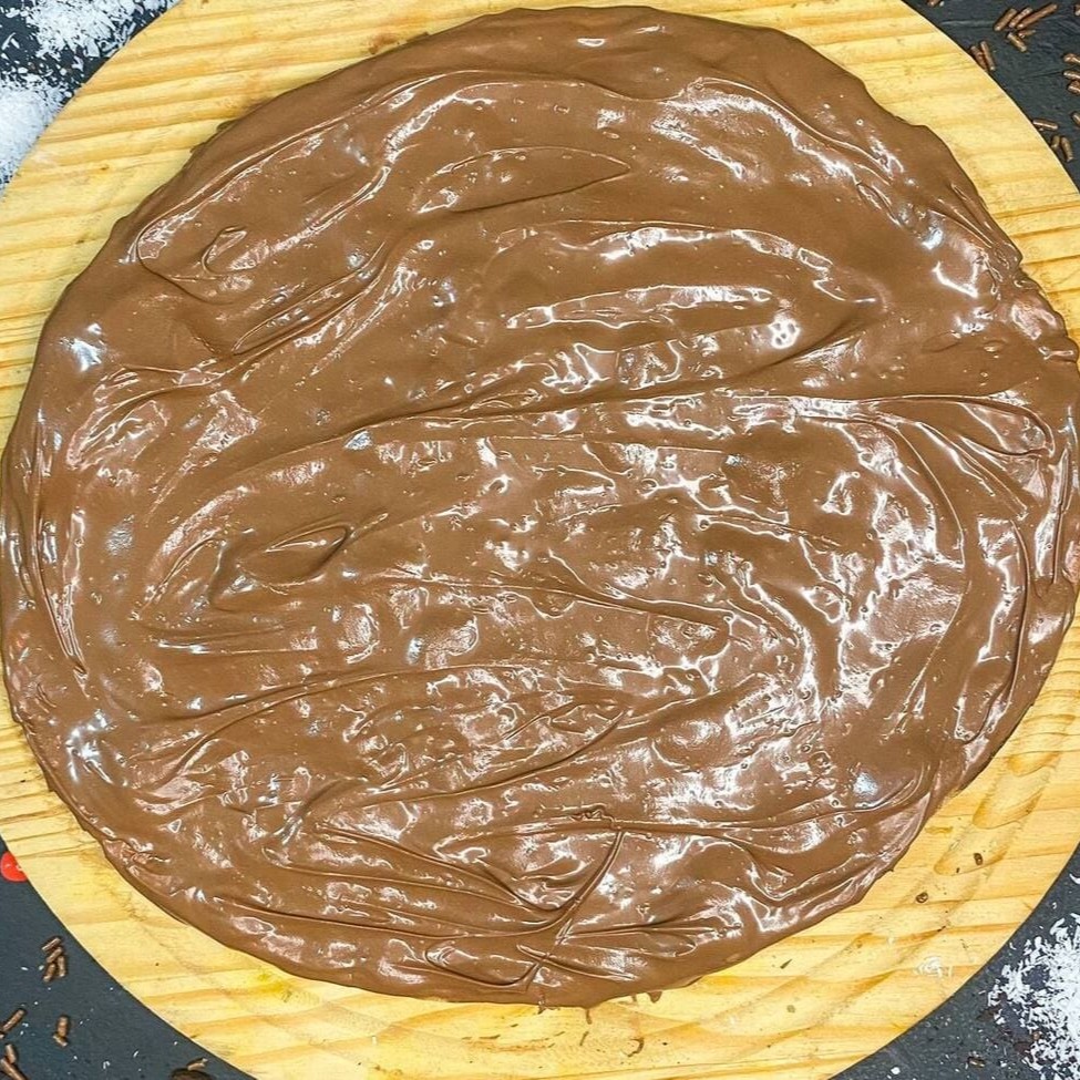 Massa artesanal e cobertura de chocolate ao leite Tamanho: 25 Centimetros (4 fatias)