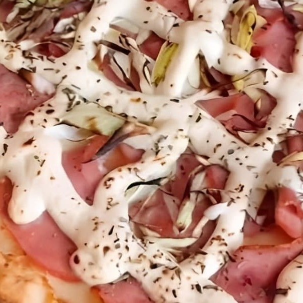 Massa artesanal, molho de tomates pelati italianos, mussarela de alta qualidade, lombo canadense premium, cremosidade do cream cheese e finalização com lâminas frescas de alho-poró. Uma combinação sofisticada e irresistível.