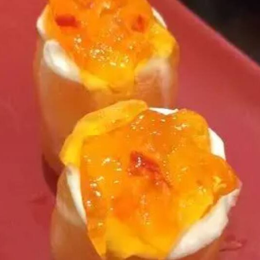 Enrolado de arroz ,nori ,cream cheese e goiabada. Empanado e frito
