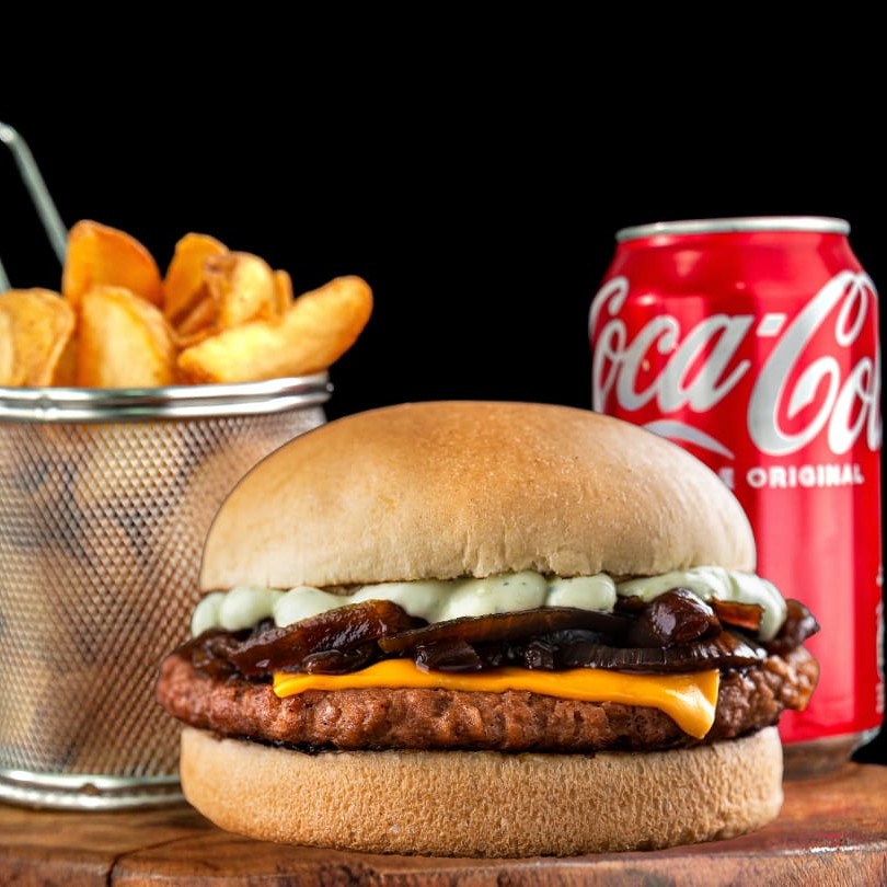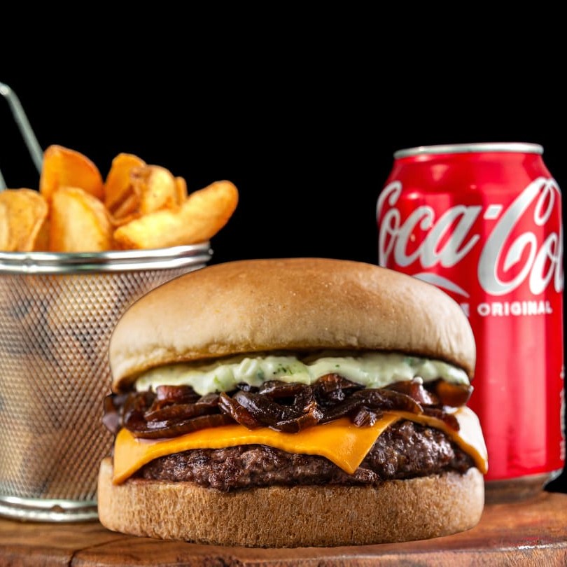 120g de carne angus no maravilhoso pão brioche prime tostado com queijo cheddar, cebola no shoyu e molho da sua escolha + batata canoa acompanhada de maionese de ervas + bebida. Obs.: O molho que irá selecionar vai dentro do burger. Obs.: Nossa batata sempre vai acompanhada de maionese de ervas.