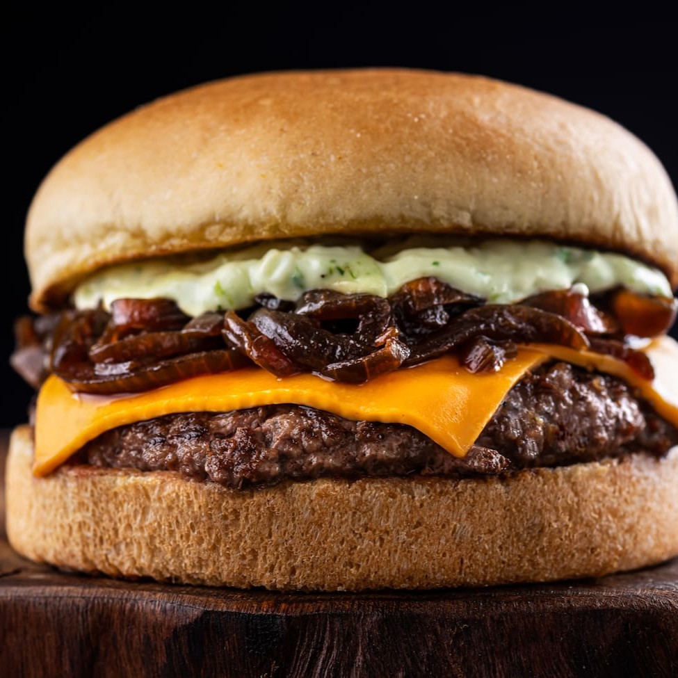 Dois deliciosos blends angus de 120g, com fatias de queijo muçarela, crispy onions e um toque especial de alho torrado no maravilhoso pão brioche prime e molho a sua escolha. Obs.: O molho que irá selecionar vai dentro do burger.