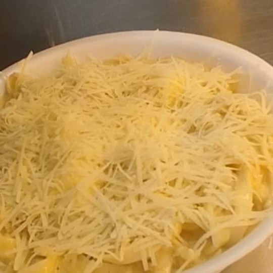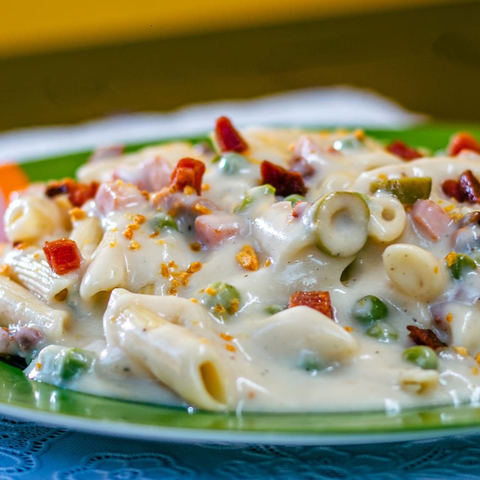 (800gr)Deliciosa massa a sua escolha com os ingredientes refogados na manteiga com cebola, bacon, calabresa, presunto, frango desfiado e ovo de codorna e tudo isso com m nosso molho branco cremoso finalizado com queijo parmesão ralado na hora.