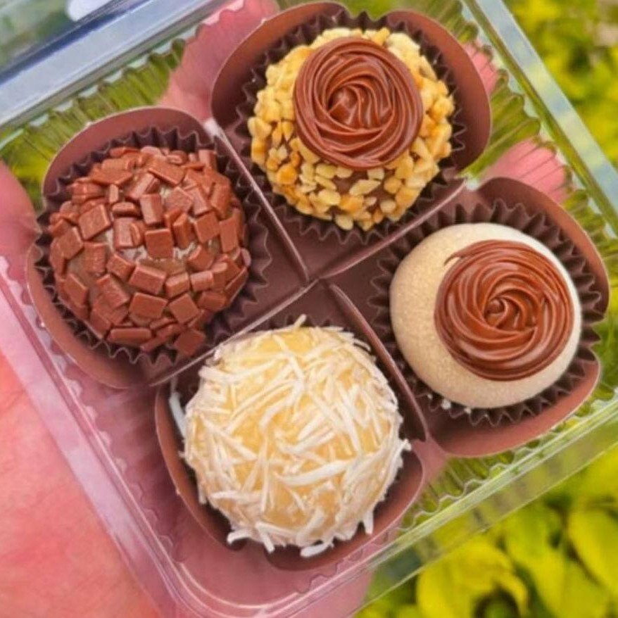 Um mix delicioso com 4 docinhos artesanais, fresquinhos e feitos com muito carinho. Perfeito para adoçar seu Dia ou compartilhar com alguém especial. Ideal para quem ama variedade e sabor em cada mordida!