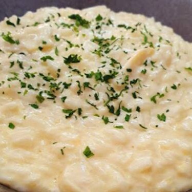 Arroz a piamontese com creme de queijos, tomilho e um toque de limão. A quantidade é indicada para 2 pessoas já levando em consideração outros dois acompanhamentos.