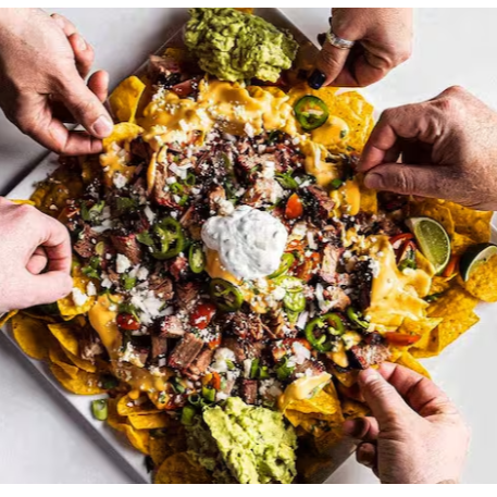 Carne Bouvina desfiada, chilli, pico de galo, salsa, bacon ,calabresa ,cheddar ,catupiry , mussarela.