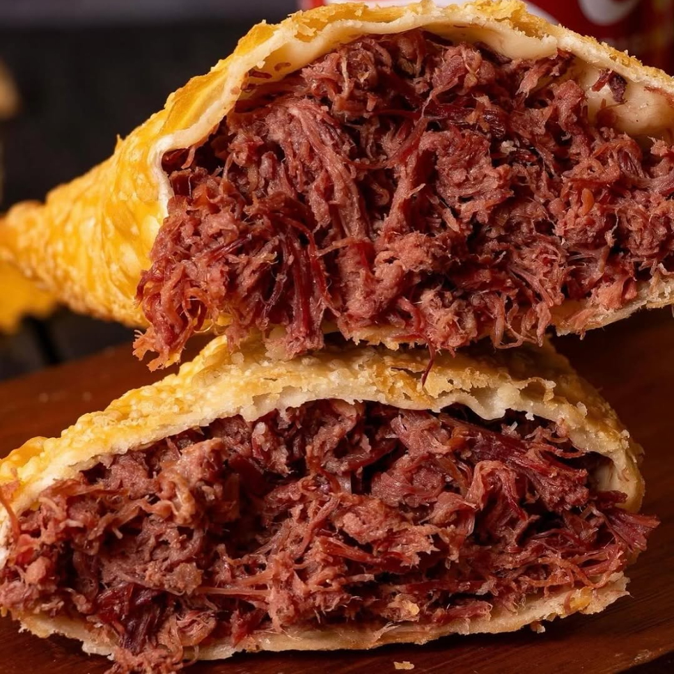 carne seca suculenta + cream cheese ultra cremoso, tudo dentro de uma massa dourada e crocante. Um pastel absurdo de bom, derrete na boca e faz você pedir outro sem pensar duas vezes!