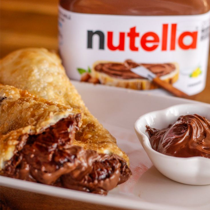 Se existe pecado delicioso, é esse aqui! Morangos suculentos, Nutella cremosa e barra de chocolate branco derretendo juntinhos num pastel crocante. Uma explosão de sabores doces e irresistíveis!