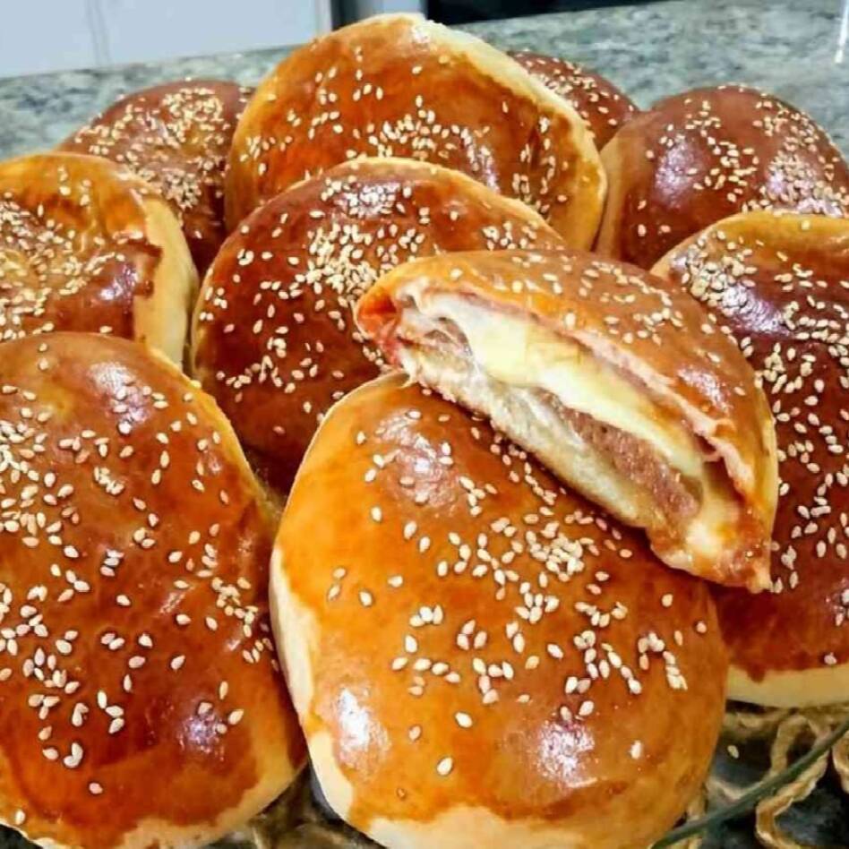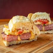 pão de hamburguer, hamburguer misto 56g, queijo mussarela, presunto