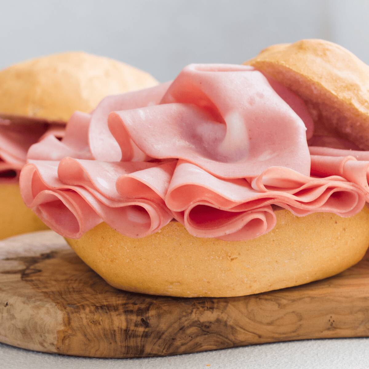 pão francês, margarina e mortadela defumada - sanduíche frio / imagem ilustrativa