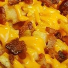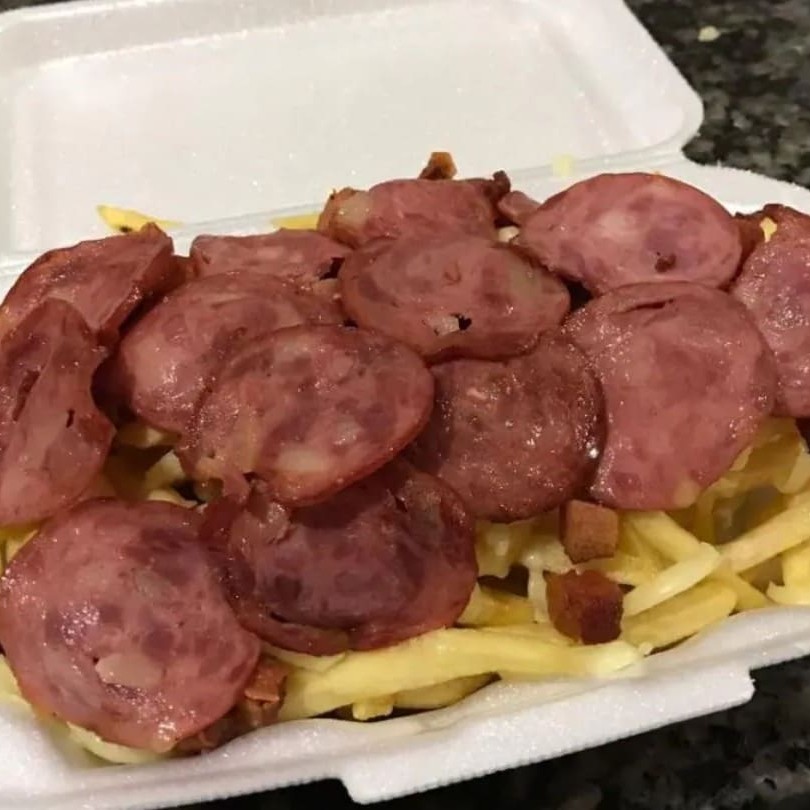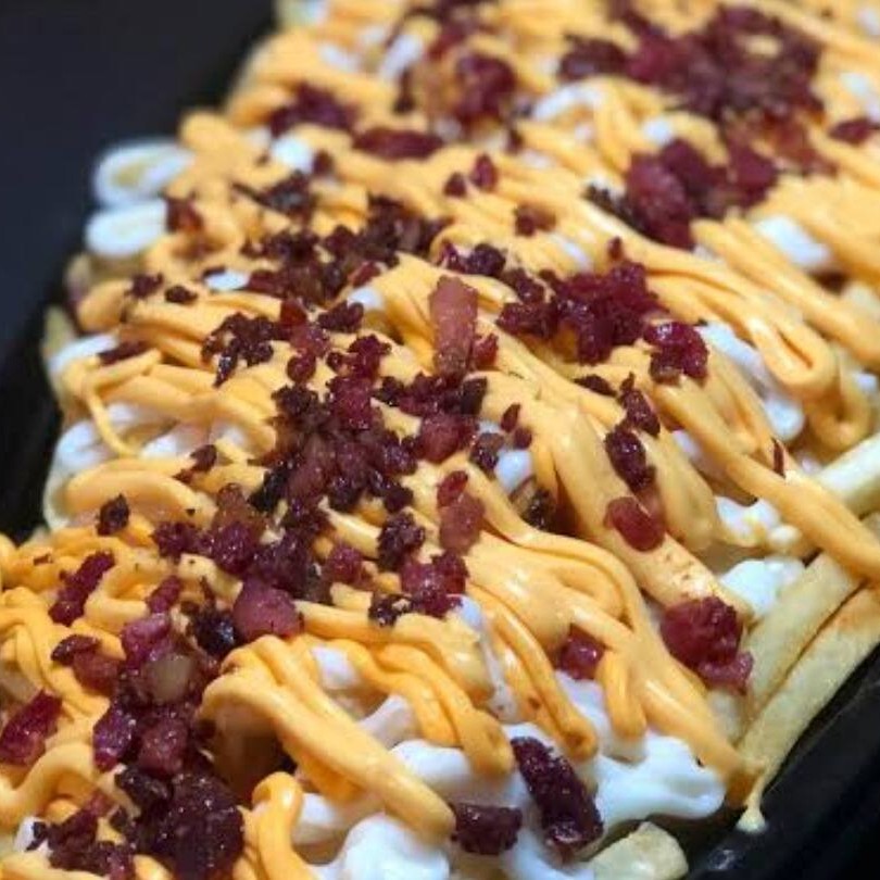 Batata frita fresquinha e quentinha completa ( calabresa bacon Billy jack cheddar )