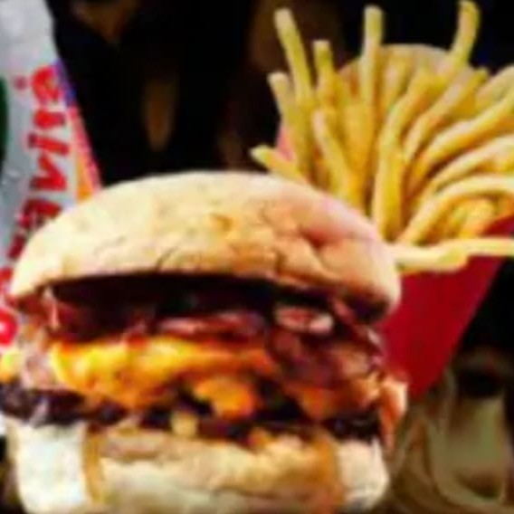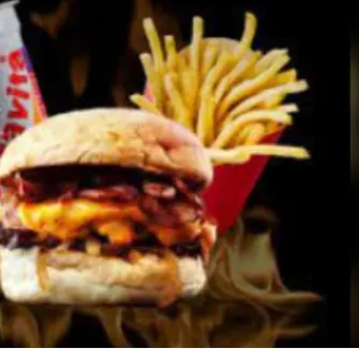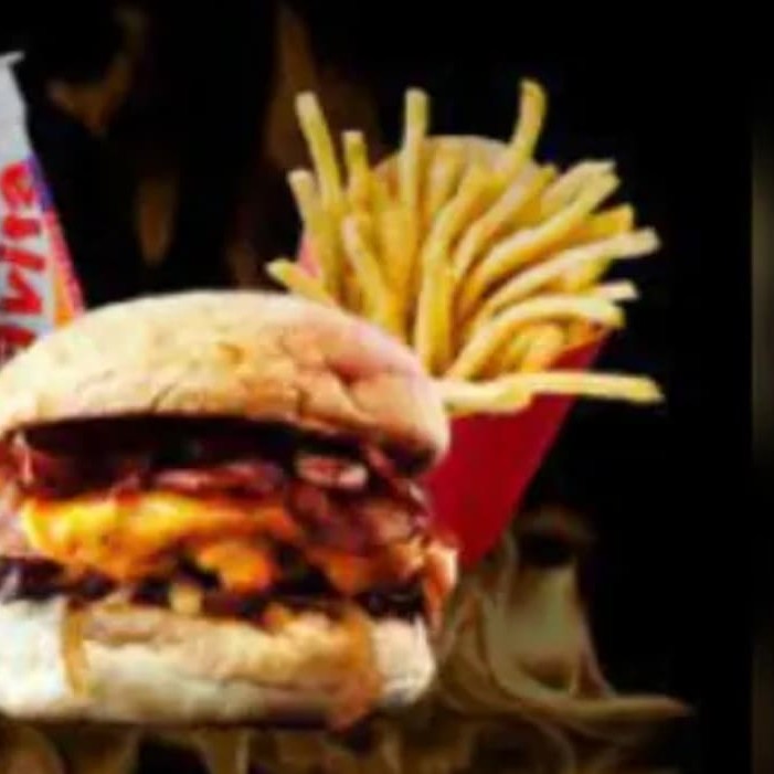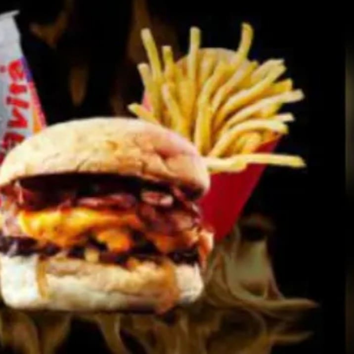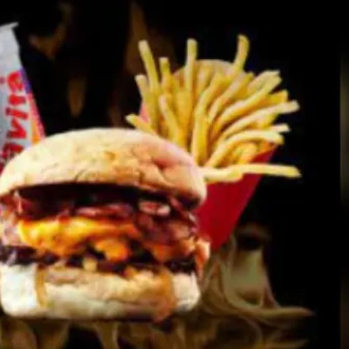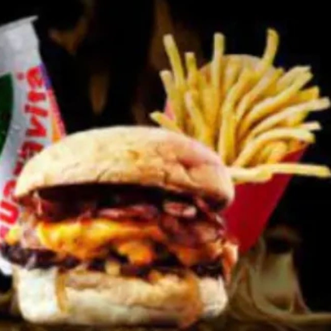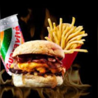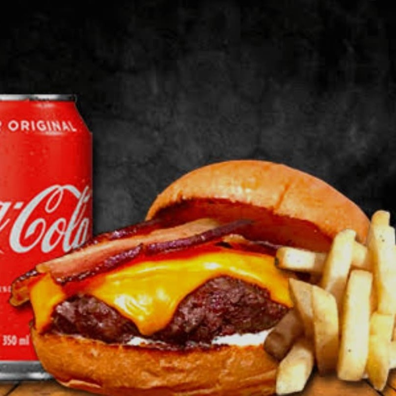 Composto por Pao macio , carne suculenta , queijo derretido ,bacon em cubos e molho barbecue+batata p com cheddar + guarana ou coca lata