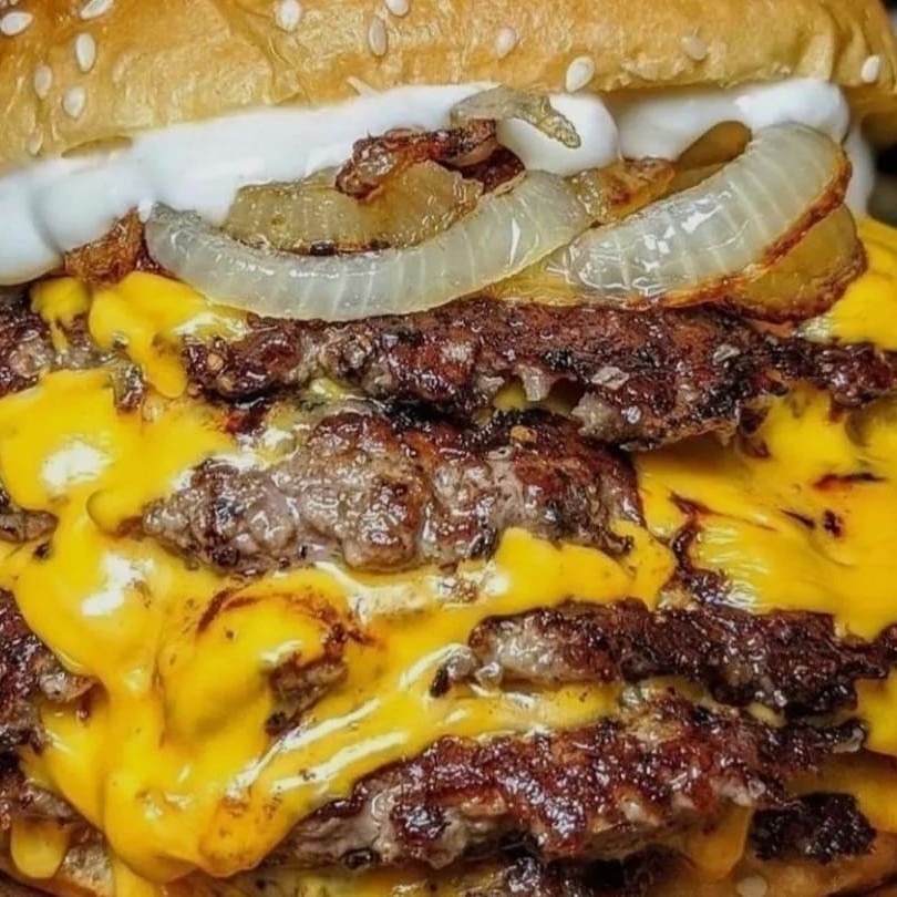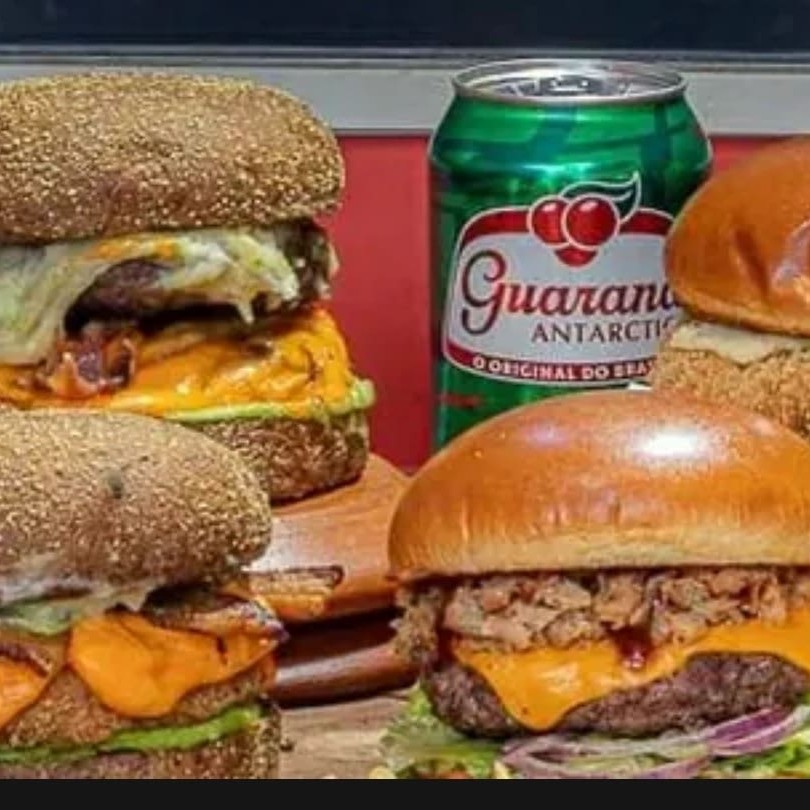 Pão gergelim, 6 carne56g,4queijo derretido,4presunto, 2 ovos, bacon, calabresa e molho especial batata p e guaravita