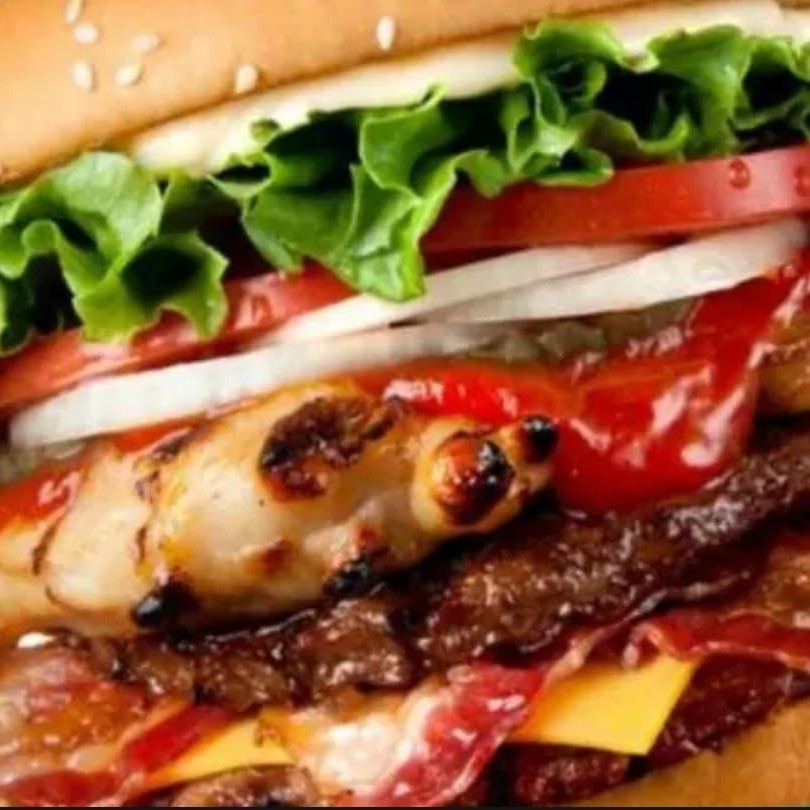 Pão delicioso, 2 carnes suculentas, 2queijos derretidos ,2presuntos, ovo bacon em cubos ,calabresa deliciosa e molho especial