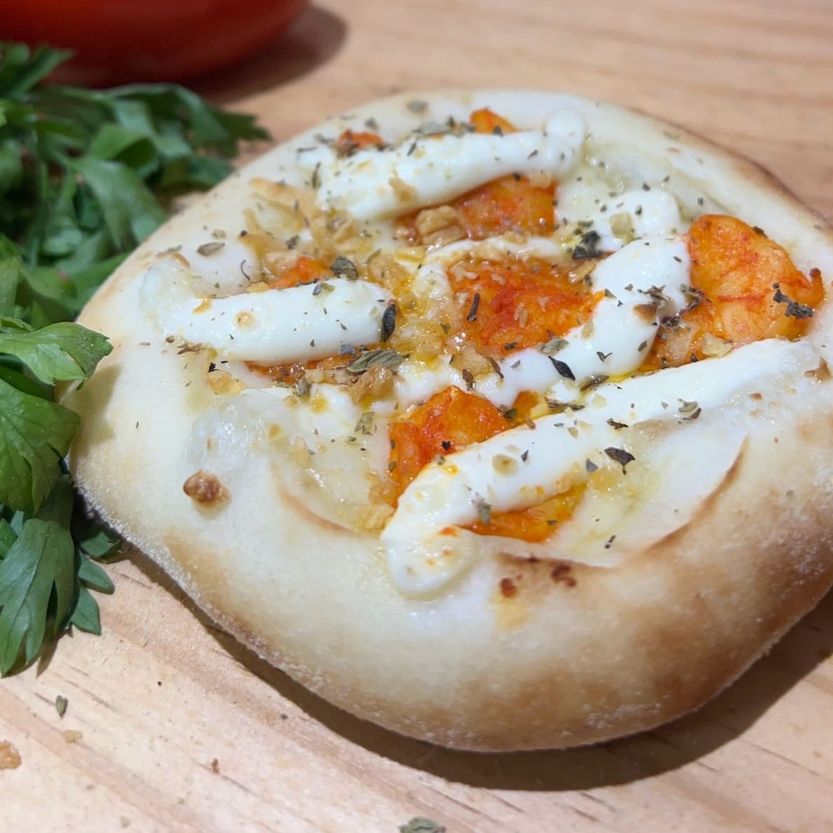 Queijo muçarela derretido na medida certa, com toque de orégano. Cremosa e perfeita!