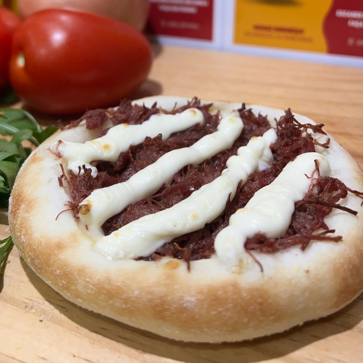 Carne seca desfiada e refogada com Catupiry Original. Cremosa e autêntica!