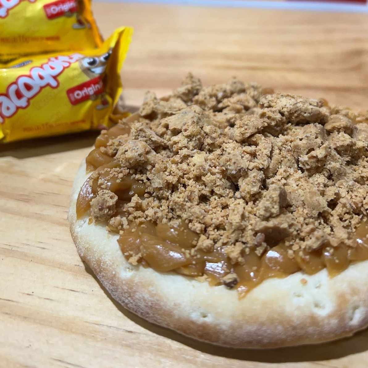 Recheio de doce de leite com farofa de paçoca por cima. Sabor de festa junina o ano todo!