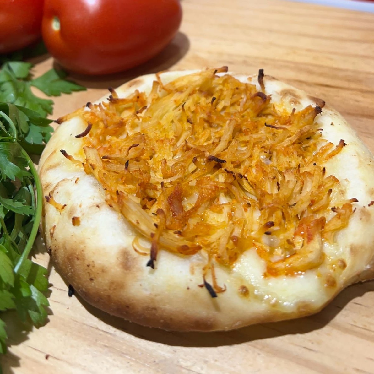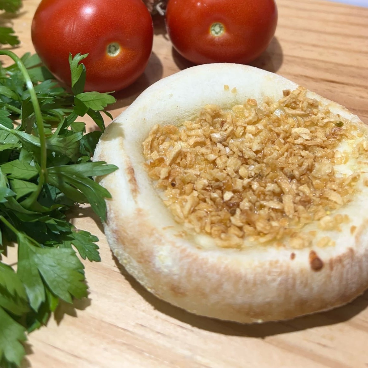Base de queijo com alho frito crocante, para quem ama um sabor marcante.