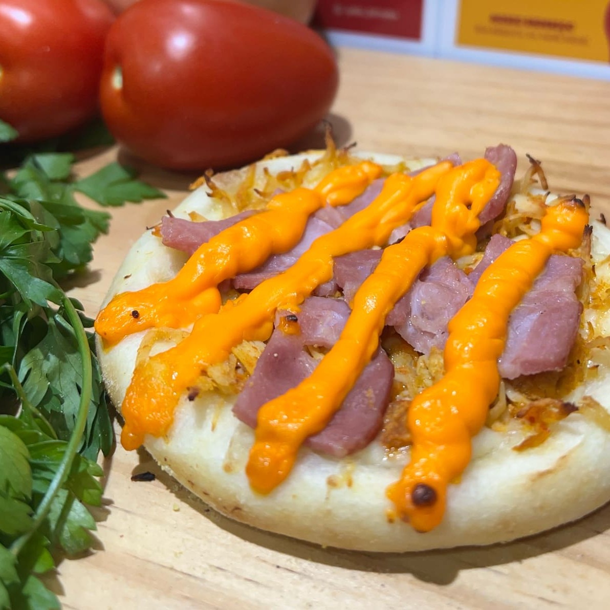 Bacon e ovos ralados com toque de orégano. Sabor intenso e marcante.