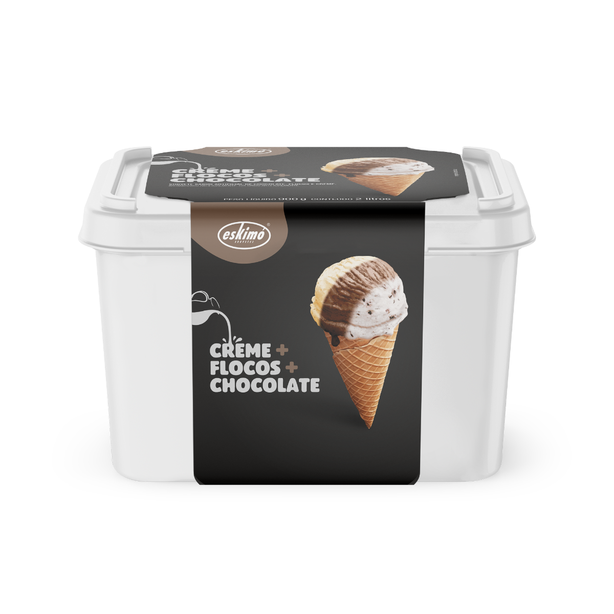 sorvete sabor artificial creme mesclado flocos e chocolate