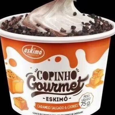 Delicioso Sorvete de Caramelo Salgado, mesclado com Cookies de chocolate em um copinho de 75g