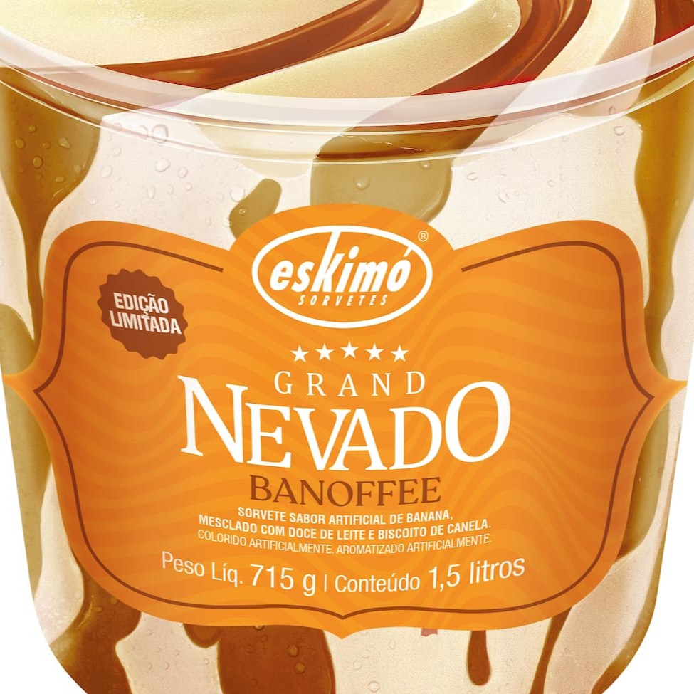 Delicioso Sorvete de banana, mesclado com doce de leite e biscoito de canela, em um pote de 1,5l