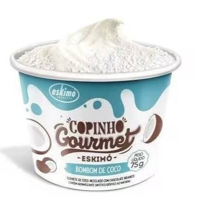 Delicioso Sorvete de coco, mesclado com chocolate branco em um copinho de 75g