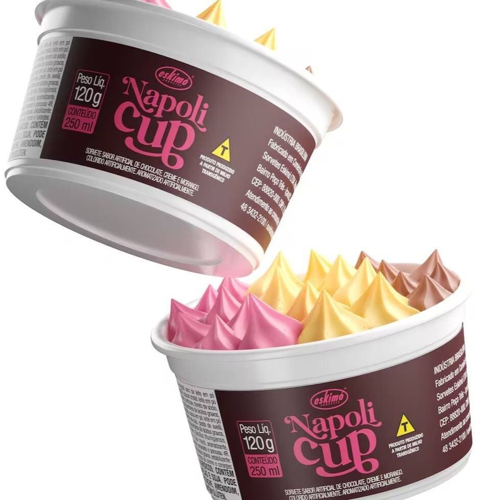 Delicioso Sorvete Napolitano (chocolate, creme e morango), em um copão de 250ml