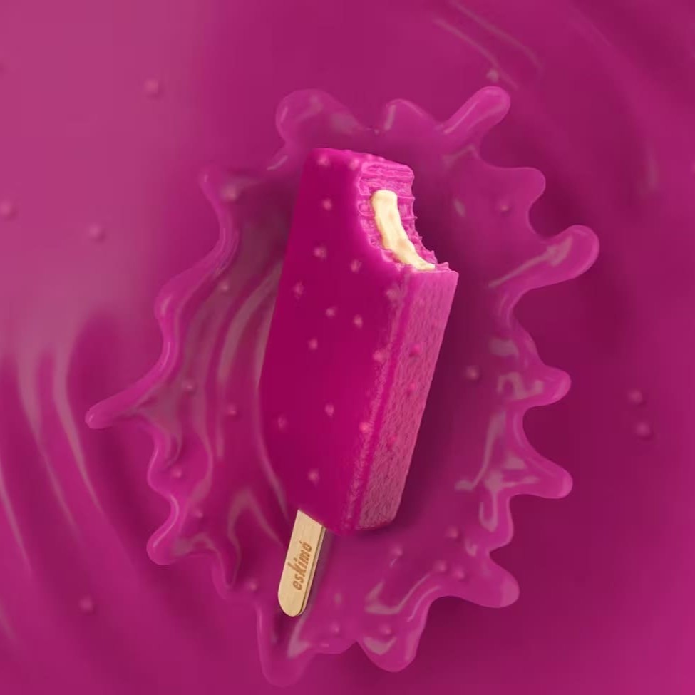 Delicioso Picolé de iogurte, mesclado com calda de frutas vermelhas.