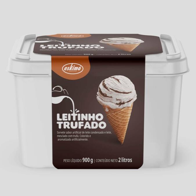Sorvete sabor leite condensado e leite , mesclado com trufa. Colorido e aromatizado artificialmente.