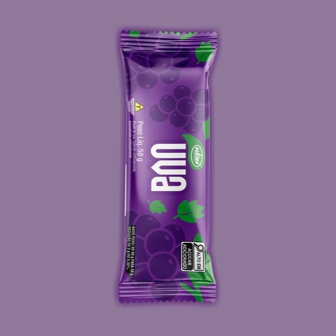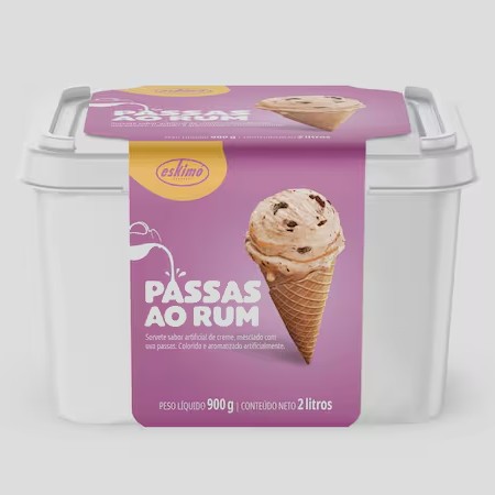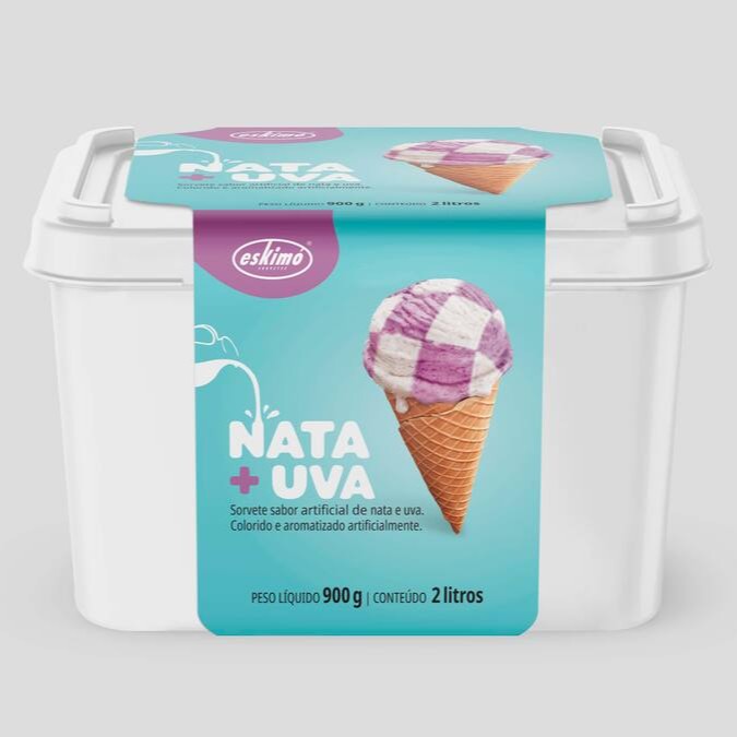 Sorvete sabor Uva e Nata. Colorido e aromatizado artificialmente.